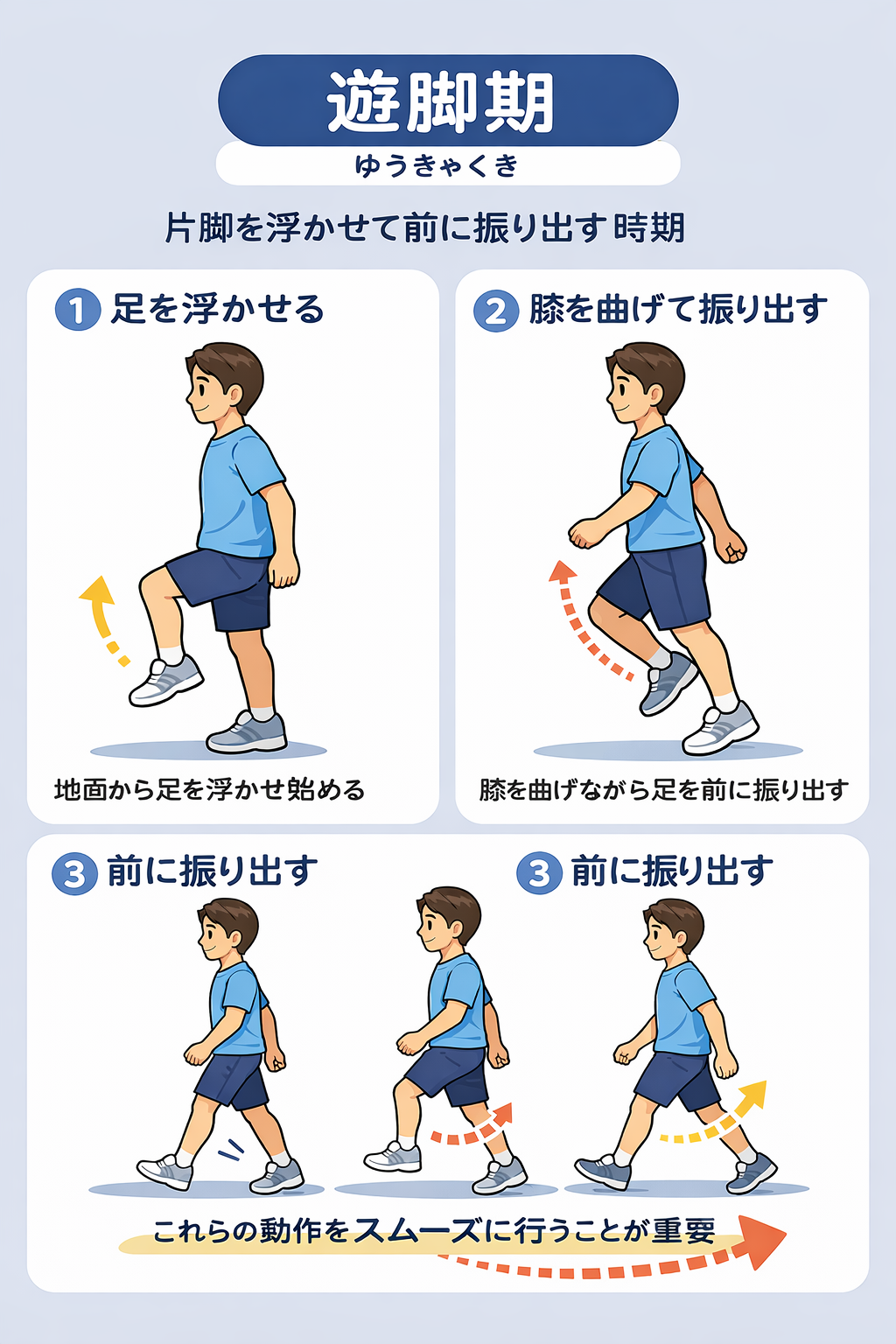**「遊脚期(ゆうきゃくき)」と「立脚期(りっきゃくき)」**です。