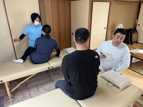 この日、新たにあん摩マッサージ指圧師の斎藤先生が入社され、岩井先生、平川先生3名で初期研修を行いました。