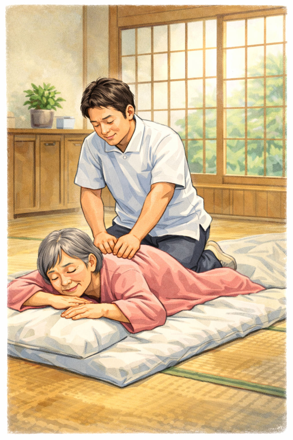 訪問マッサージの大きな特徴は、「生活の中で起きている変化を、その場で評価し、即座に介入できること」です。